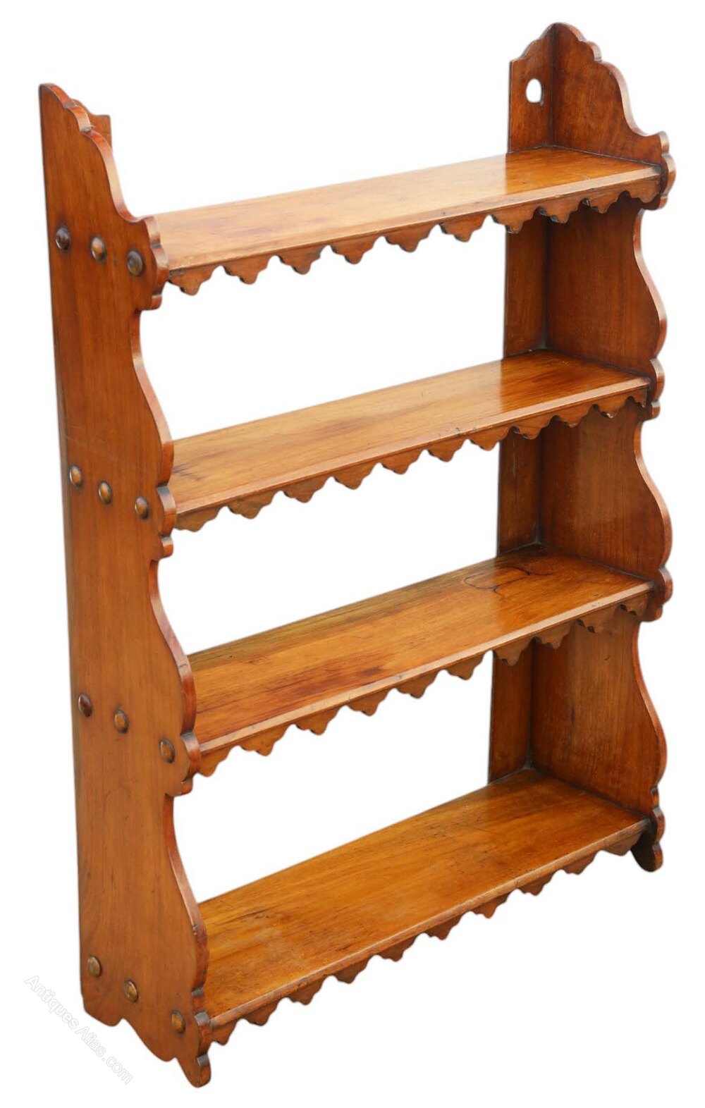 Antique 19th Century Quality Walnut Waterfall Bookcase Wall Shelves – Quality & Charming Design