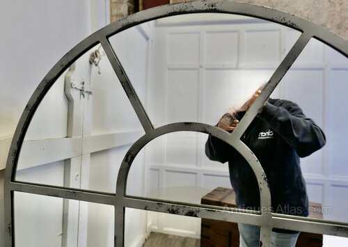 Arch Top French Window Mirror, Large Industrial Style