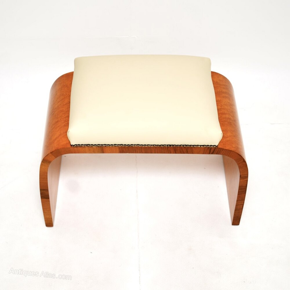 Art Deco Burr Walnut and Leather Stool