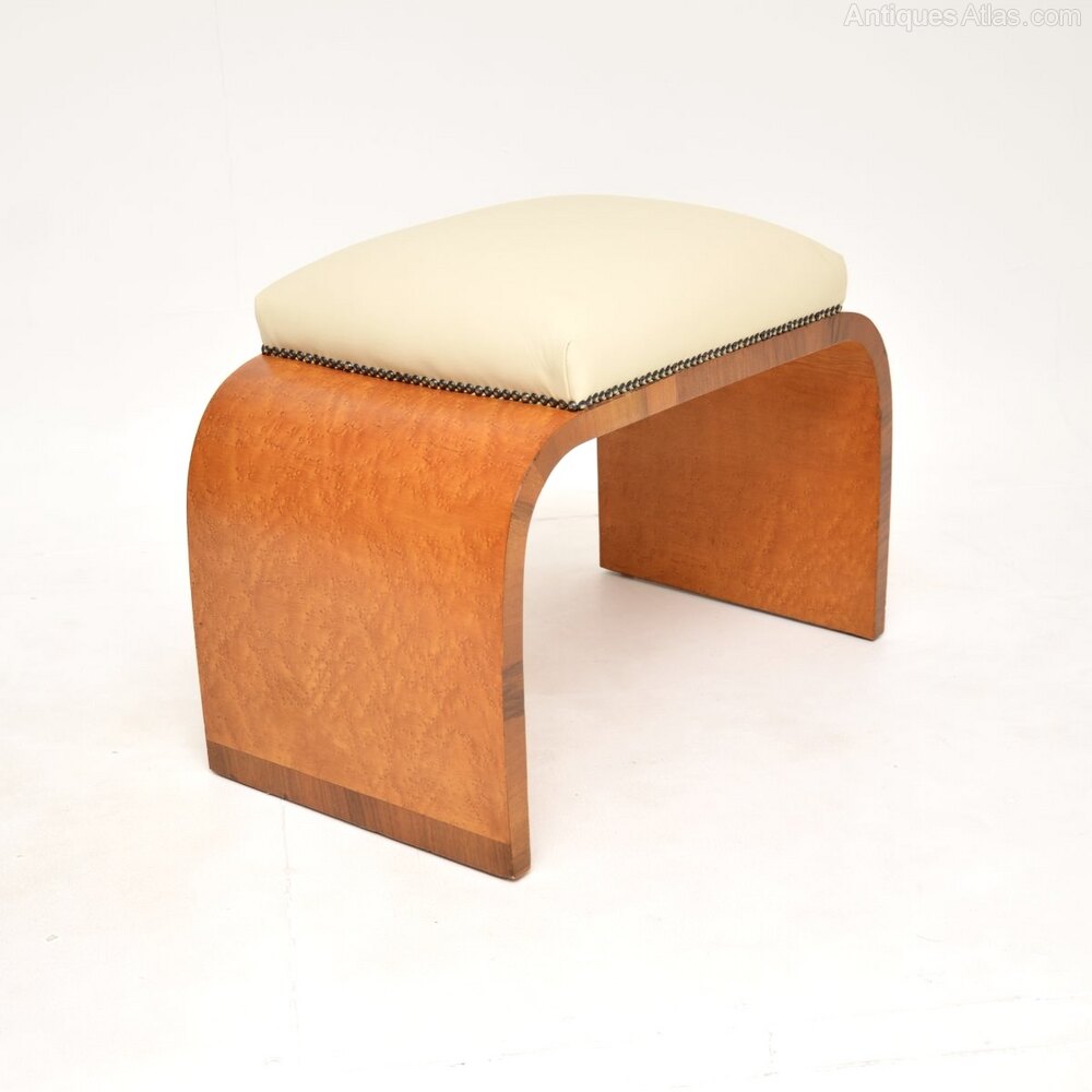 Art Deco Birds Eye Maple and Leather Stool