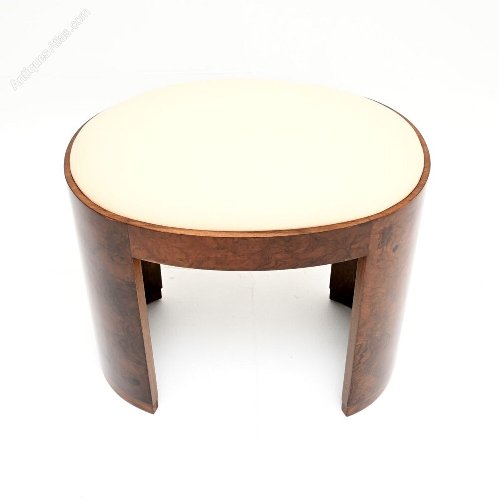 Art Deco Burr Walnut and Leather Stool
