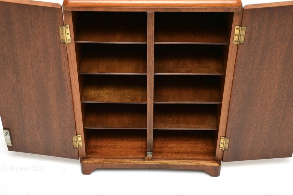 The quality is outstanding this is extremely well made, with stunning burr walnut veneers on solid mahogany construction. The two doors open to reveal fixed shelving inside, this is a small, versatile and useful item.