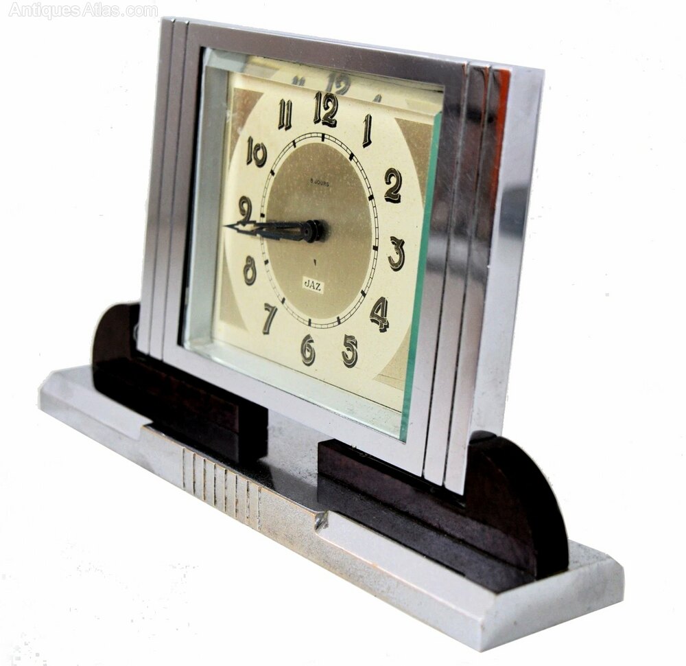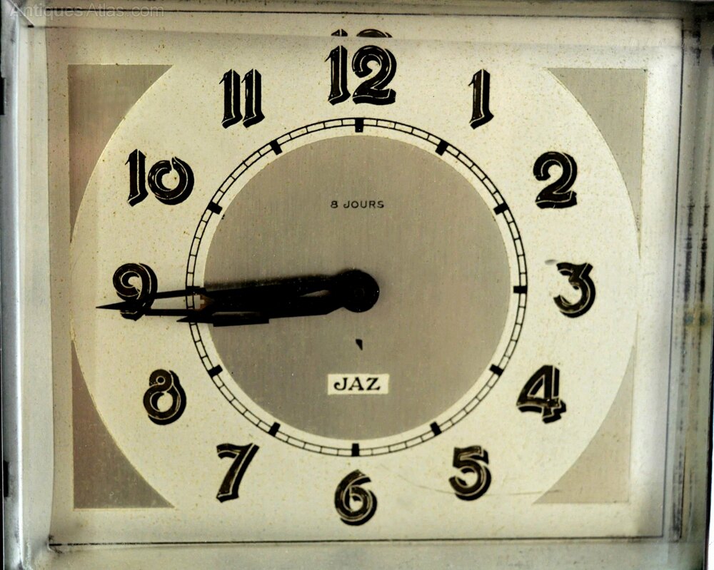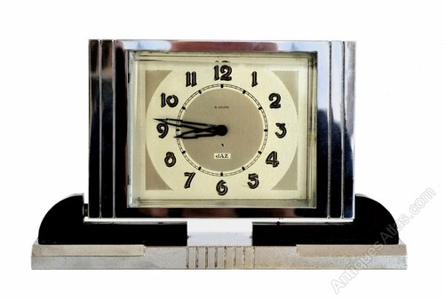 Very stylish 1930's Art Deco chrome and bakelite antique clock by the French manufacturers Jaz. Deceptively weighty time piece showing the quality that one expects from this maker. In full working order and in great condition this is an ideal clock for modern day use.