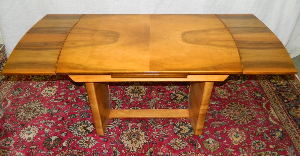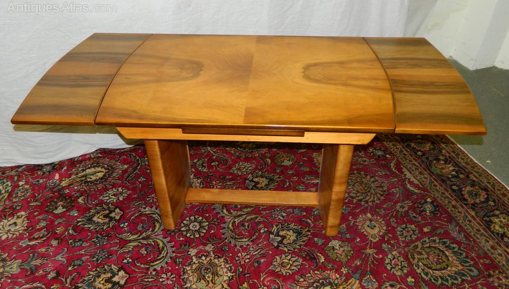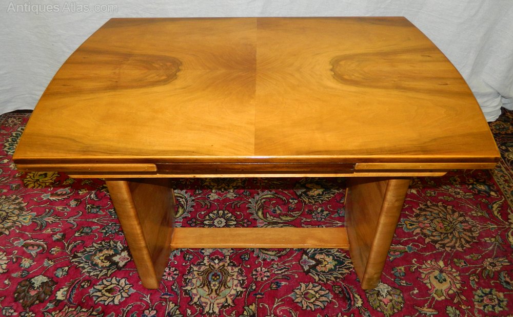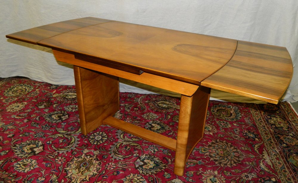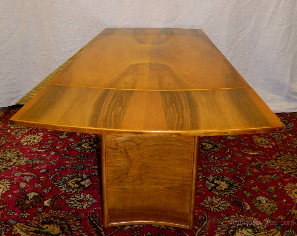 this super table with wonderfully figured top has two pull out curved leaves and is raised on curved supports united by a stretcher.