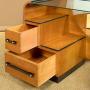 Sold together with a very well matched small revolving and height adjustable desk chair which fits neatly into the kneehole.