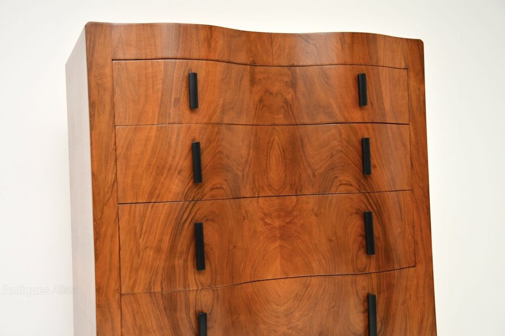 A gorgeous Art Deco figured walnut chest of drawers, this was made in England and dates from the 1930’s.