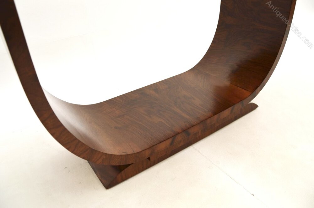 It is of exceptional quality and is a very impressive size. It stands on a beautifully designed U shaped base with useful lower tier. The figured walnut grain patterns and colour tones are stunning.