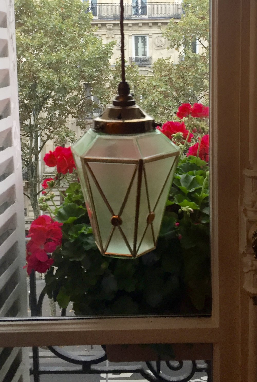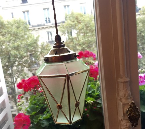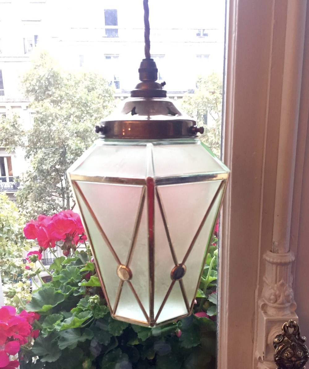 Pair 1920's Solid Brass Hanging Ceiling Lanterns