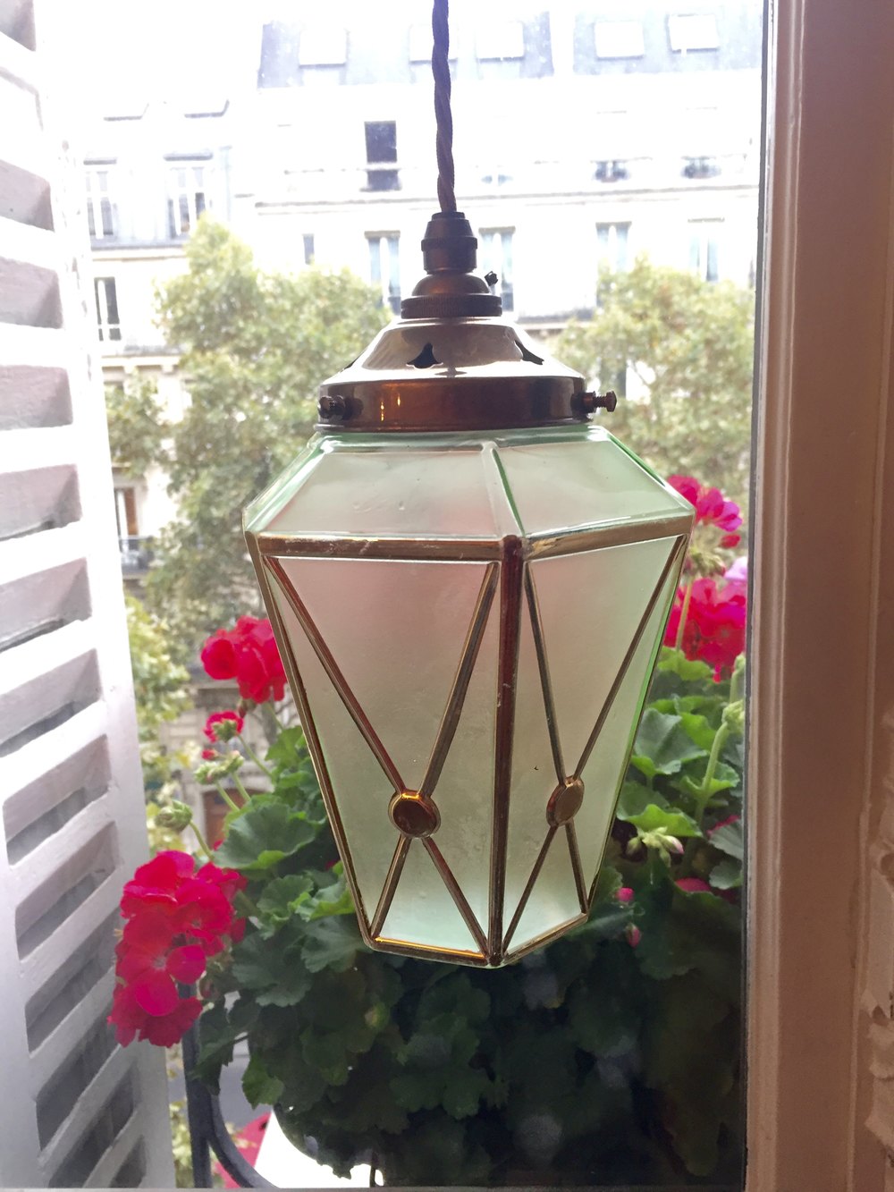 1930 Art Deco Green Ceiling Light offered complete and ready to go.
