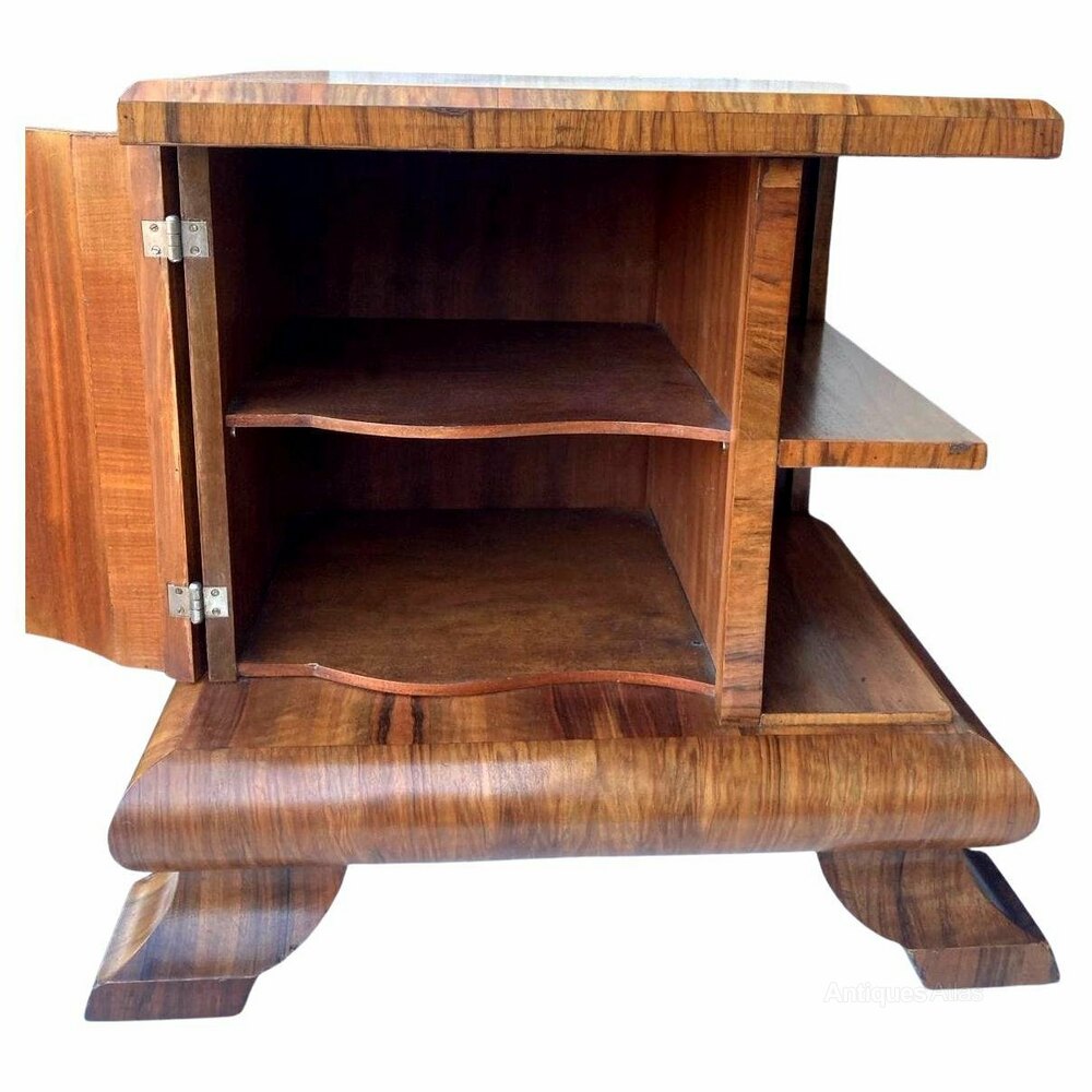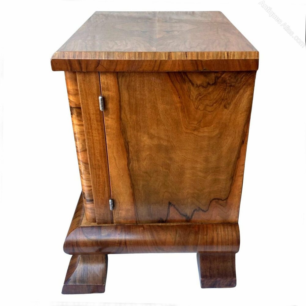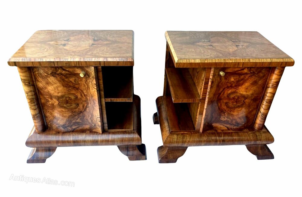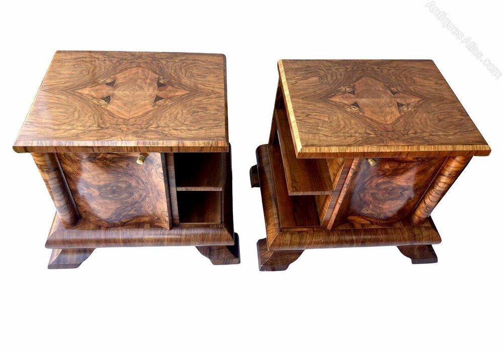Art Deco Matching Pair Of Walnut Bedside Cabinets