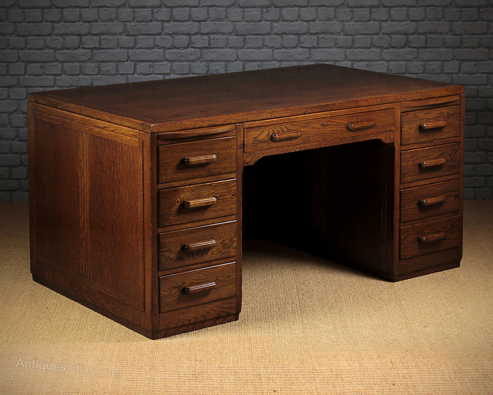Art Deco Oak Pedestal Desk c.1930.
