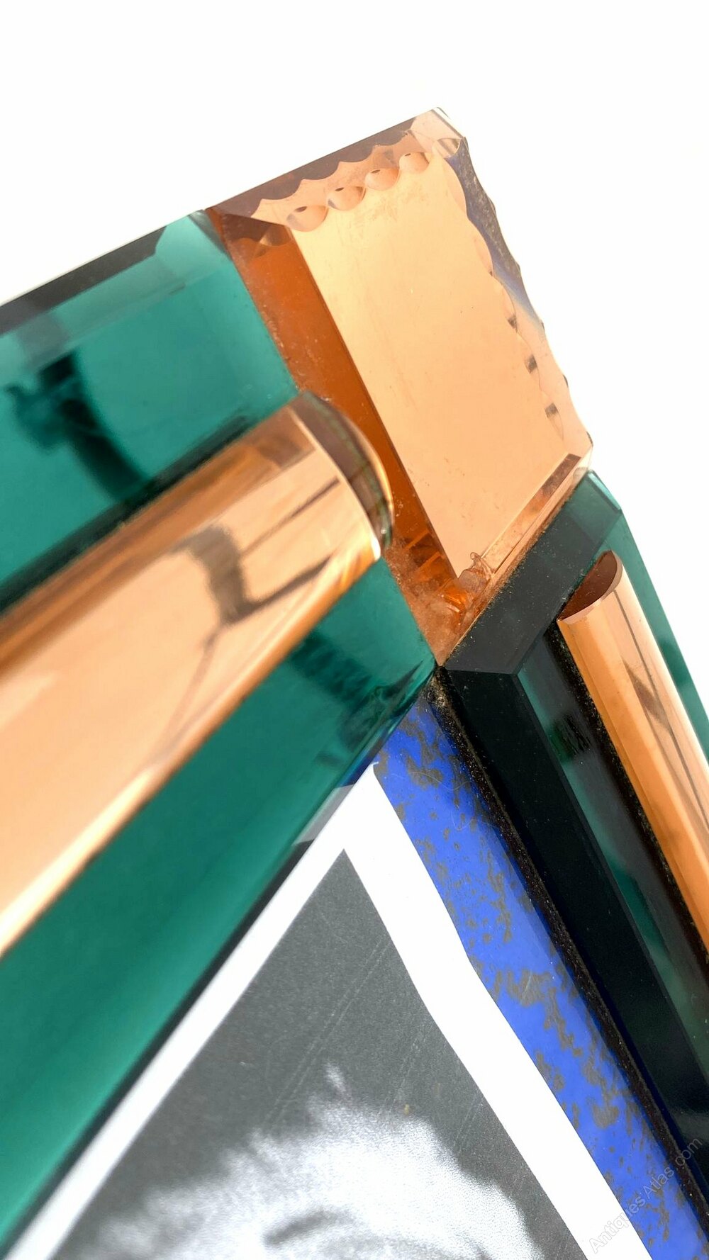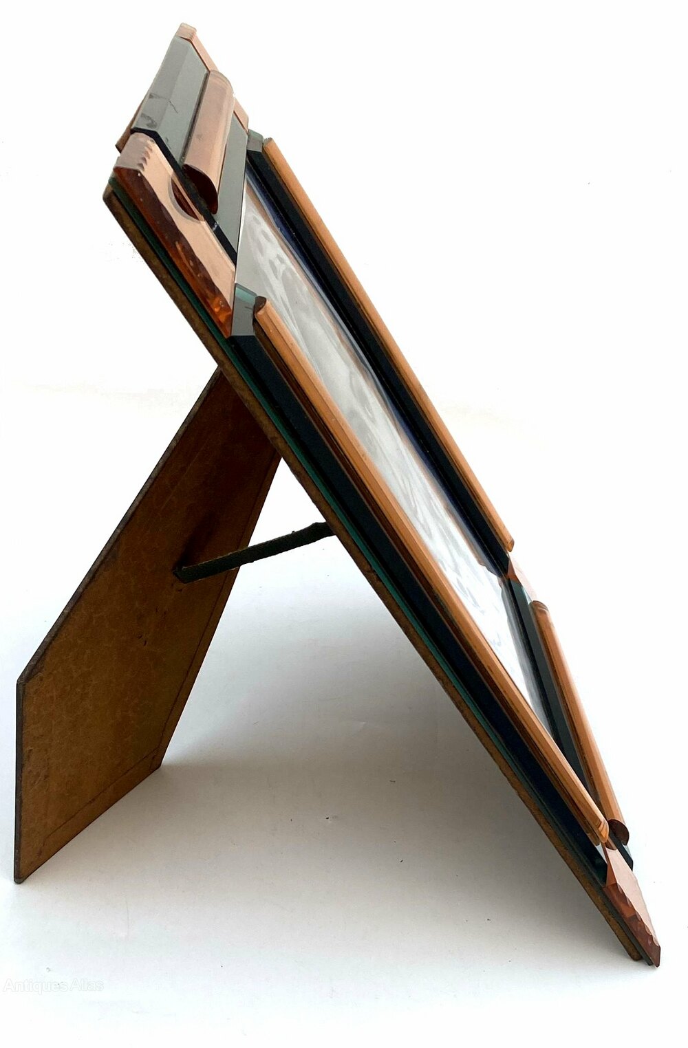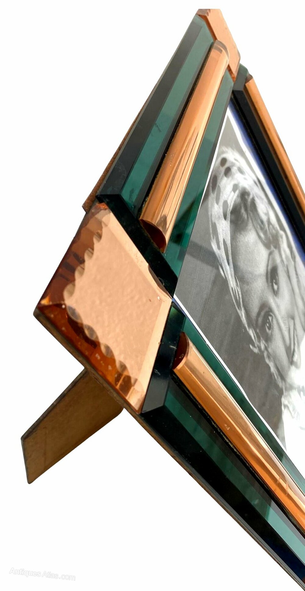 This for your consideration is a fabulously glamorous Art Deco picture frame dating to the 1930s and originating from France. An absolute delight and totally original who wouldn't want this as part of their home interior. The quality is exceptional very thick peach/rose colored mirror glass and emerald green with crimped design border, bevelled edges and deceptively heavy overall. Freestanding with a board backing which is covered in suede type material. Very good overall condition, free from damage, no chips, cracks etc. Some light misting in very small odd areas of the mirror but only seen on close inspection, nothing to detract.