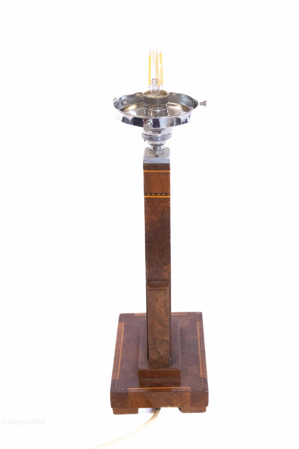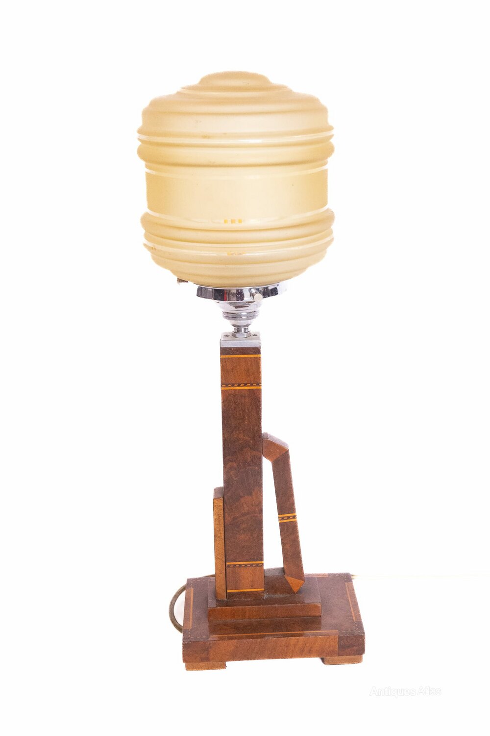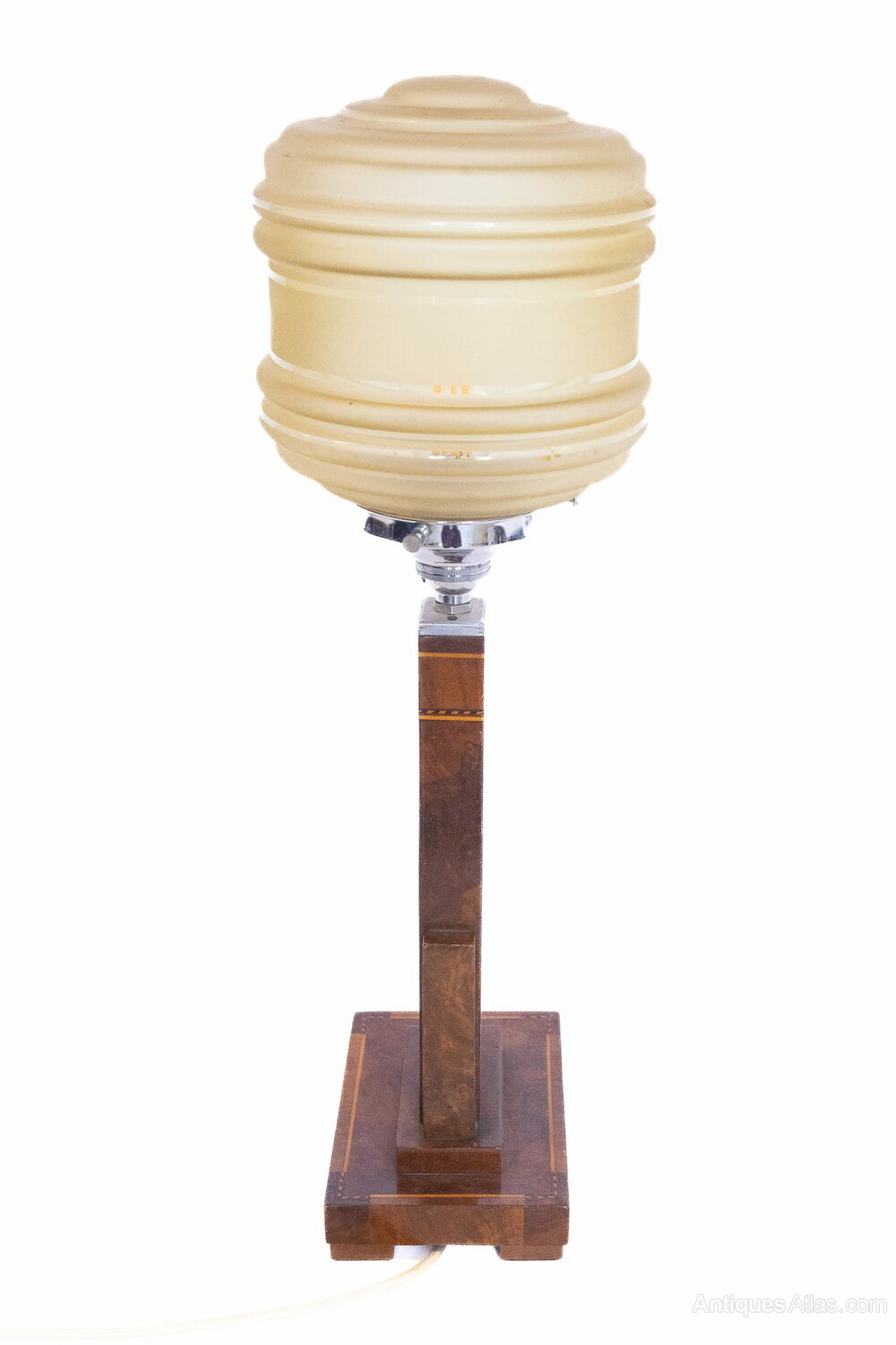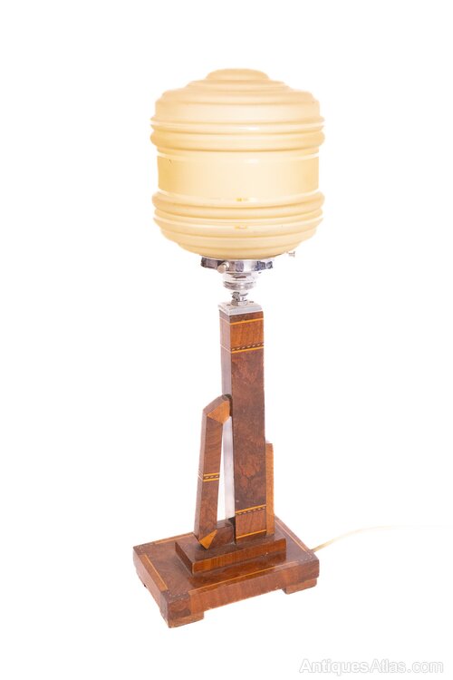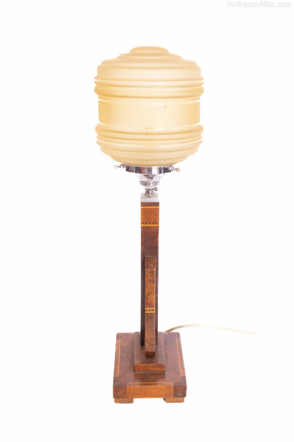 Art Deco Walnut & inlaid table lamp & shade