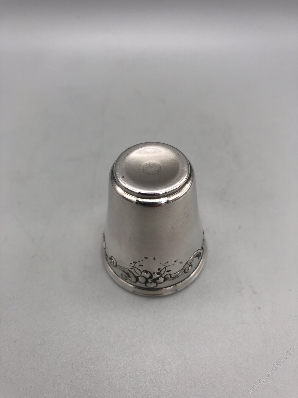 The tot cup holds a single 25ml shot. It is 4cm / 1.57ins high and 3.5cm / 1.38ins in diameter across the top rim. It weighs in at 15.3g / 0.54oz of solid 950 grade silver.