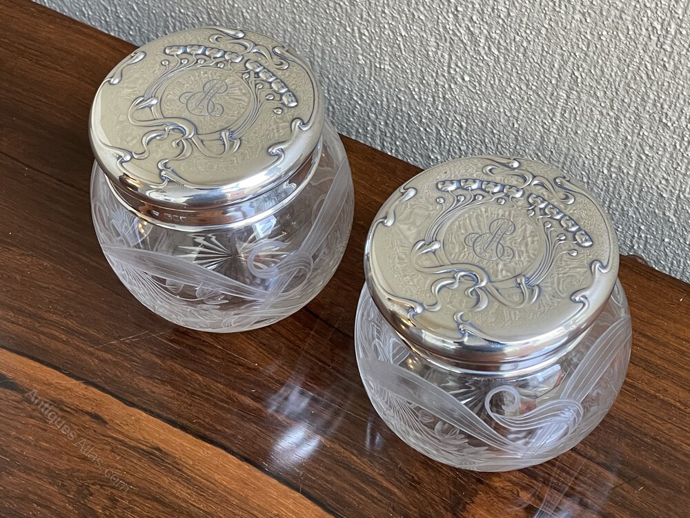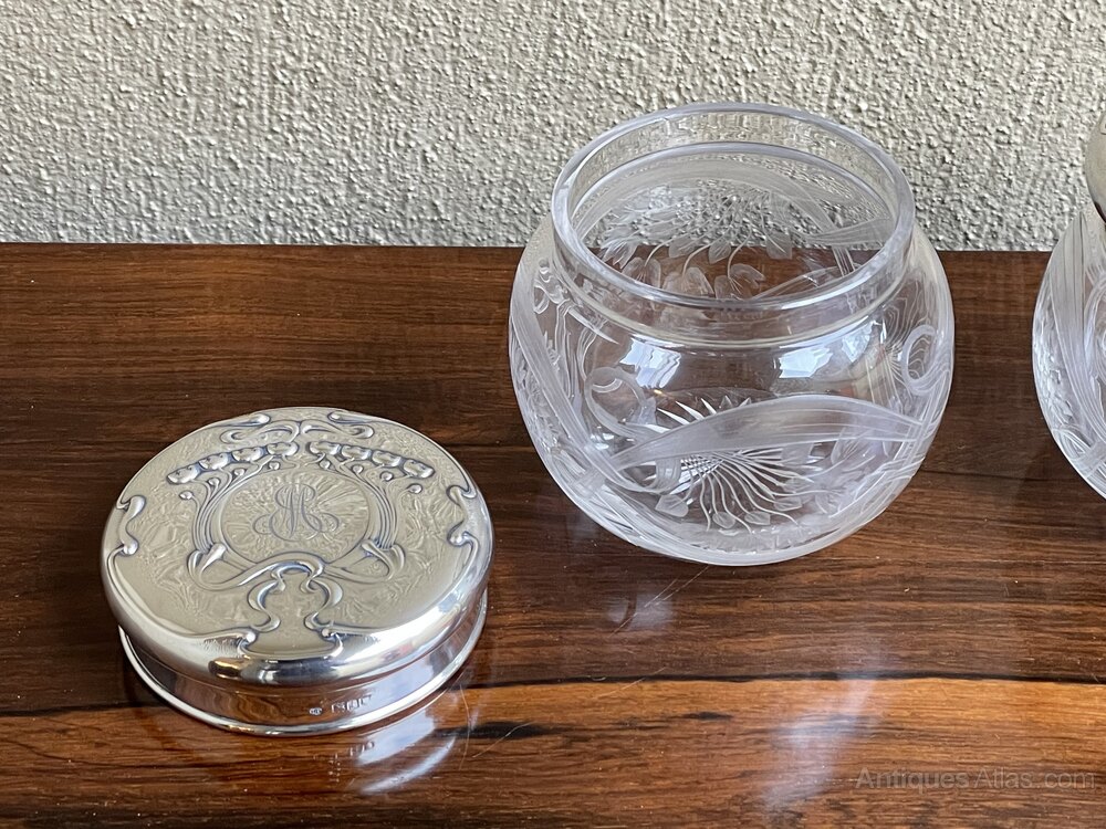 Art Nouveau Silver Mounted Dressing Table Jars
