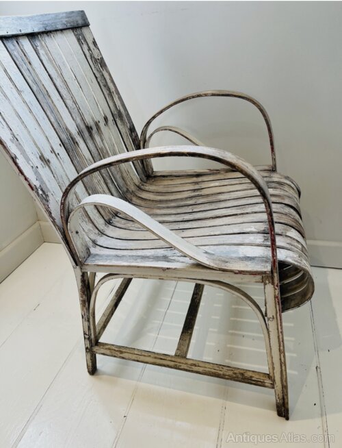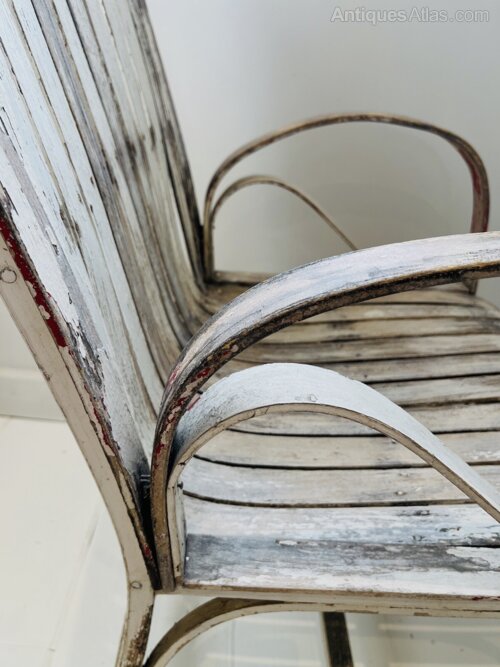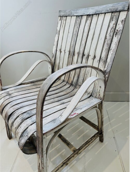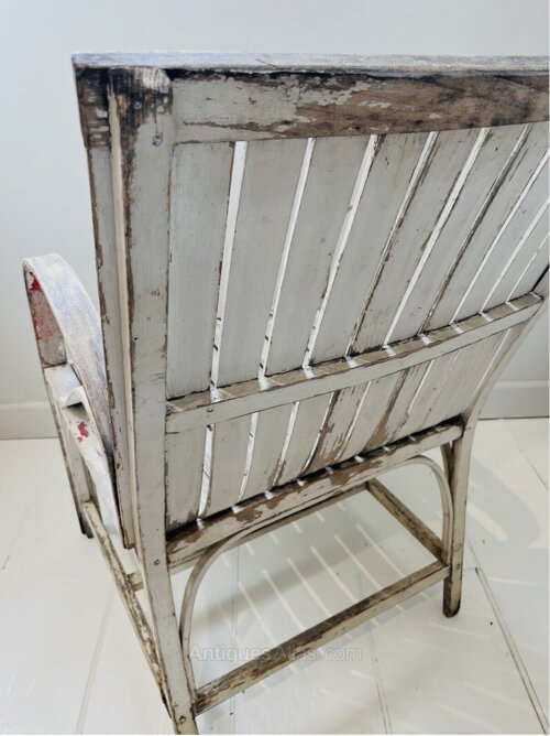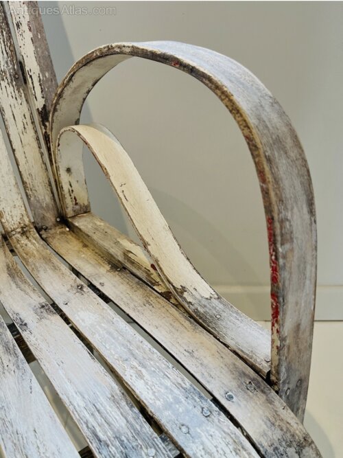 Absolutely stunning Arts & Crafts chair with a wonderful distressed patina. Beautiful steam bent curves on this early 19C piece. This is a wonderful unique chair probably more decorative than everyday but usable all the same. Signs of historic wear & tear consistent with age but the shape and form make up for it in abundance.