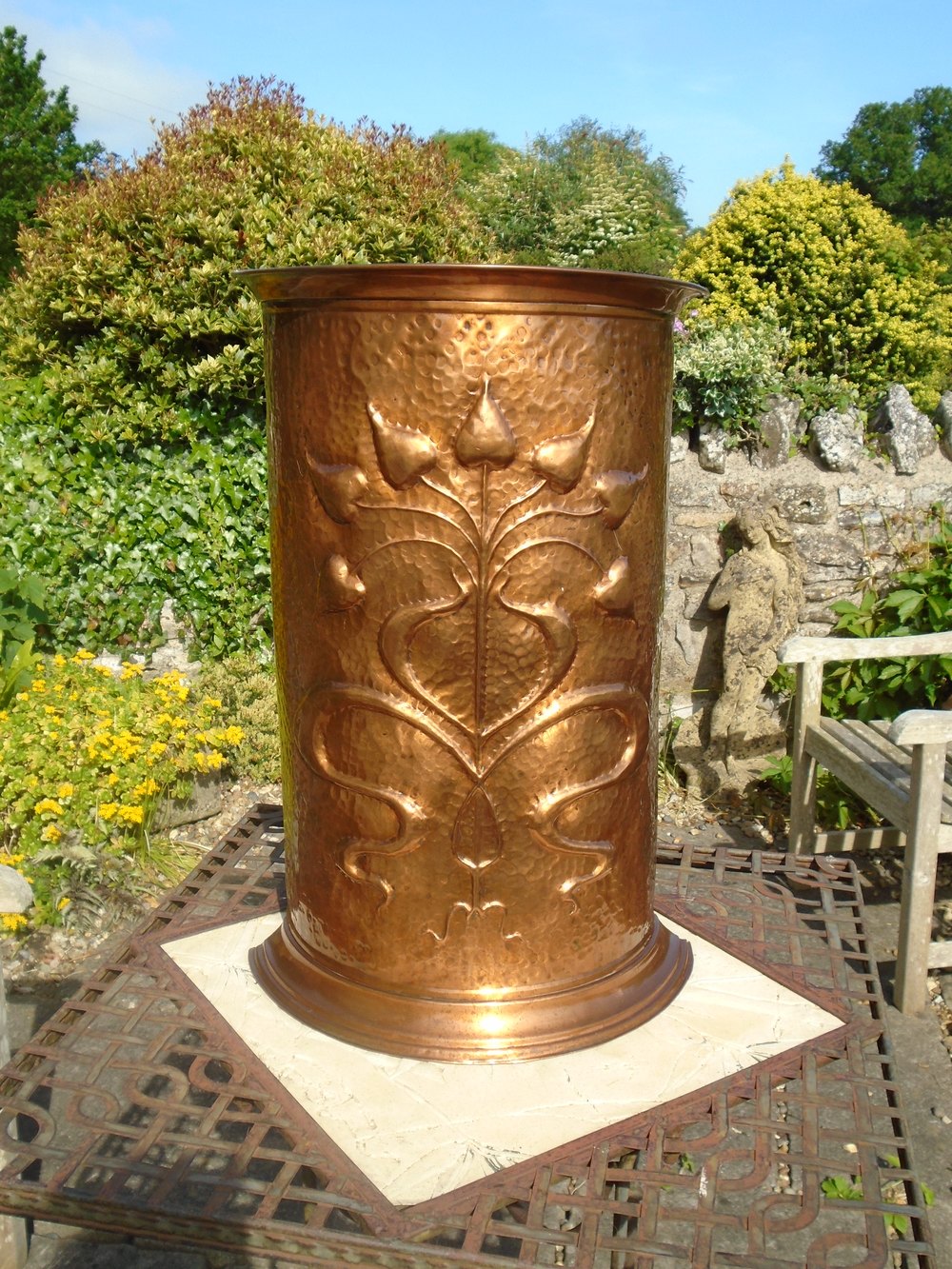Arts & Crafts copper stick stand, Pool of Hayle