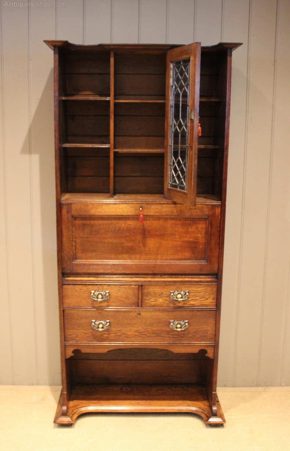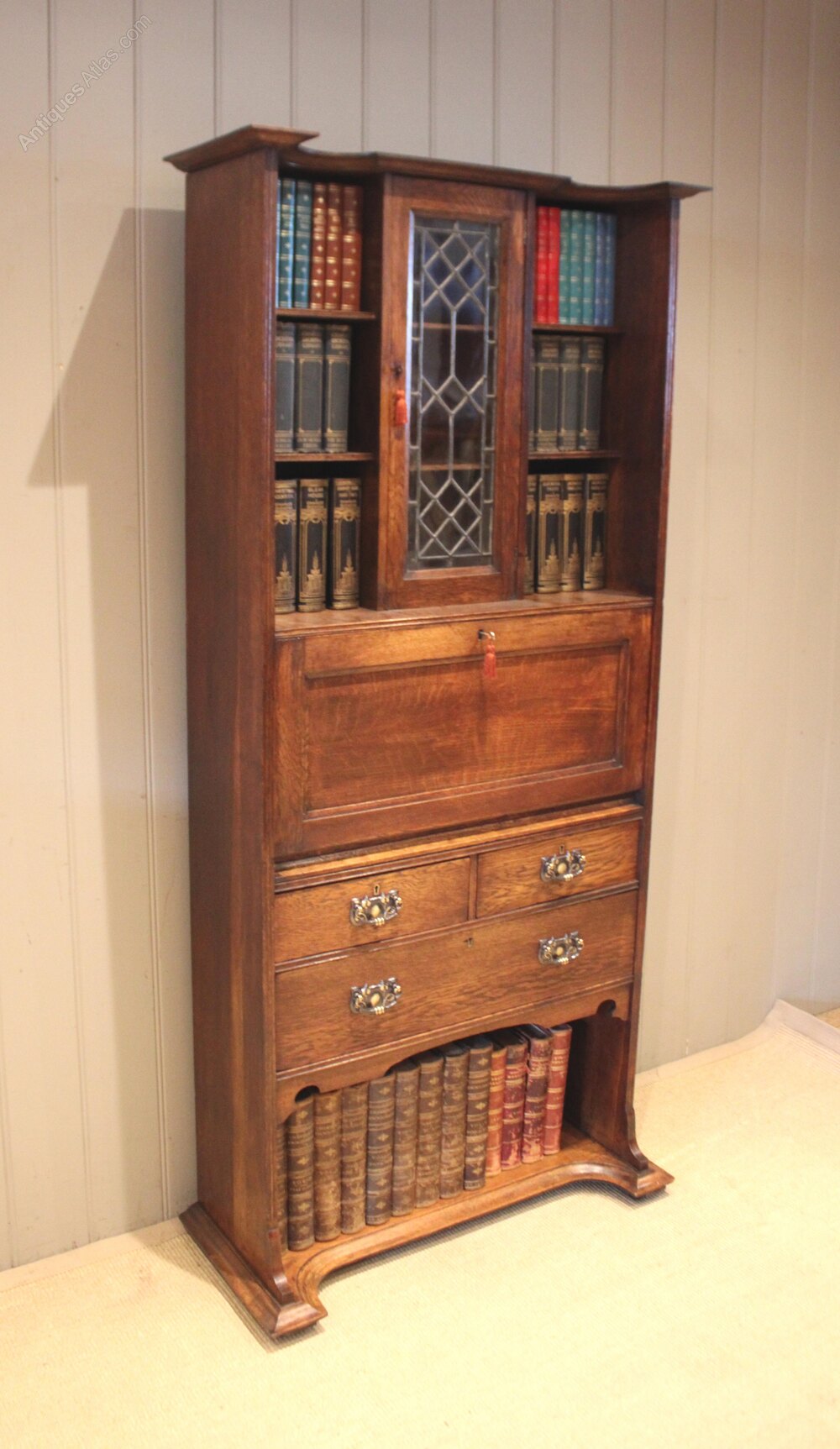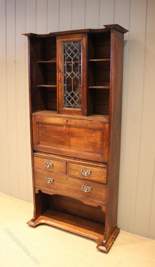 Arts & Crafts Oak Bureau Bookcase
