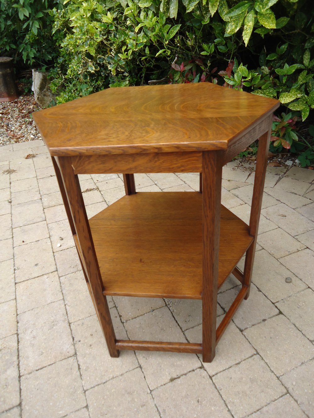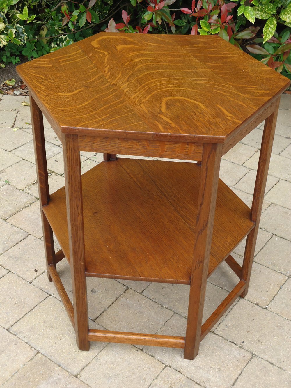 Height 66cms. The hexagonal top measures 54cms x 61cms. PLEASE NOTE, RED HOUSE ANTIQUES HAS NOW RETIRED.