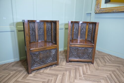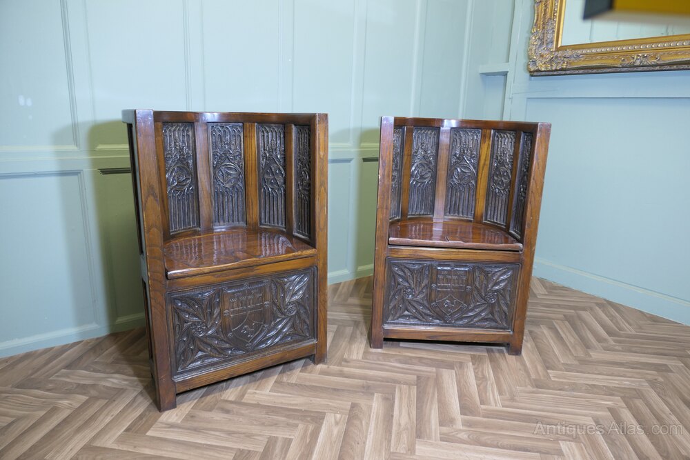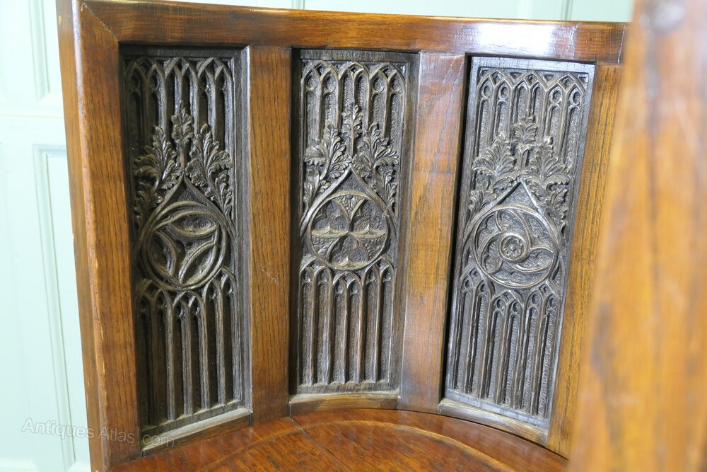 This is a Beautifully designed pair of Library or Hall chairs from the 19th Century Arts and Crafts movement Pugin inspired Style