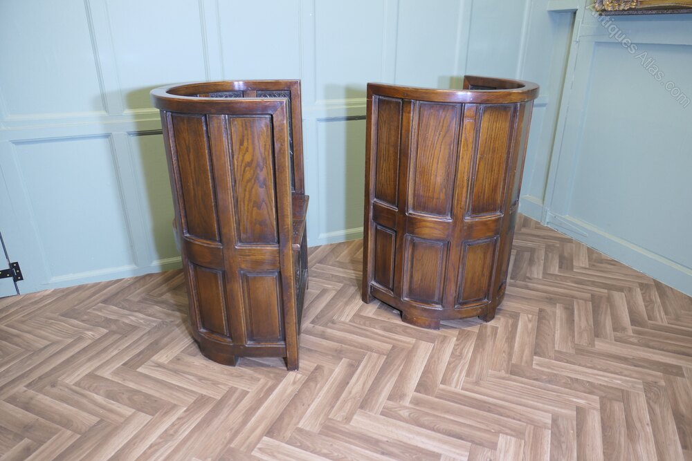 The chairs are of the finest quality, they are made in solid Oak, each one has 6 carved panels to the back of the chair and a larger carved panel at the front, the seats are a superb sculptured saddle shape