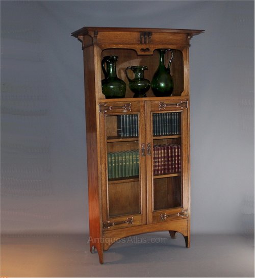 Arts And Crafts Copper Strap Oak Bookcase