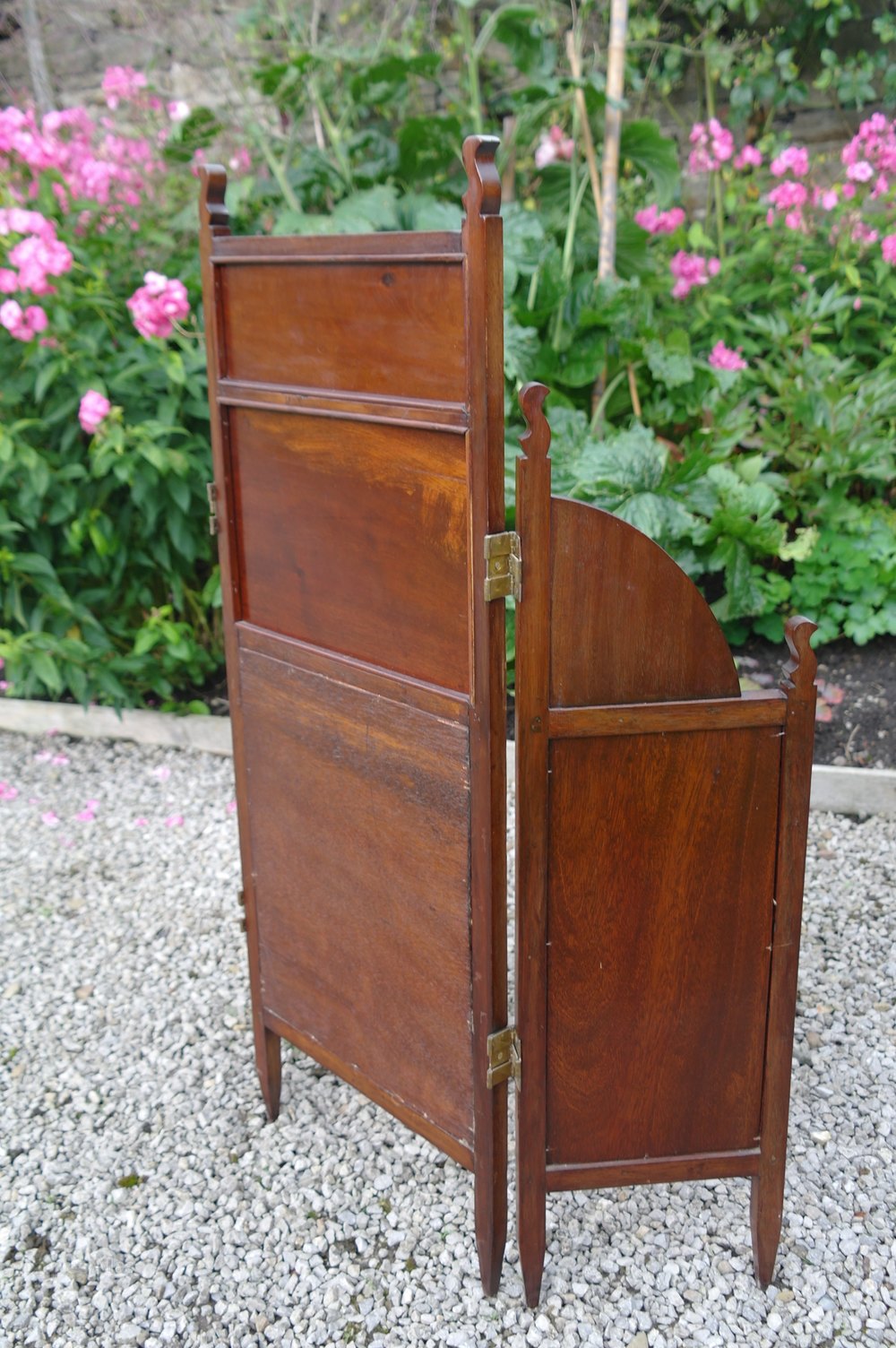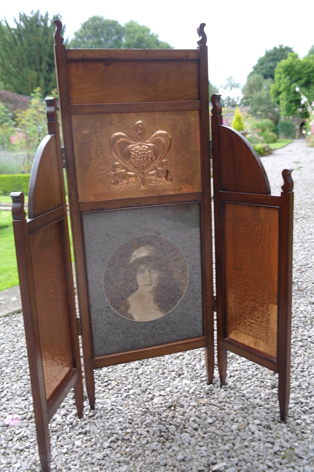 mahogany and beaten copper threefold fire screen