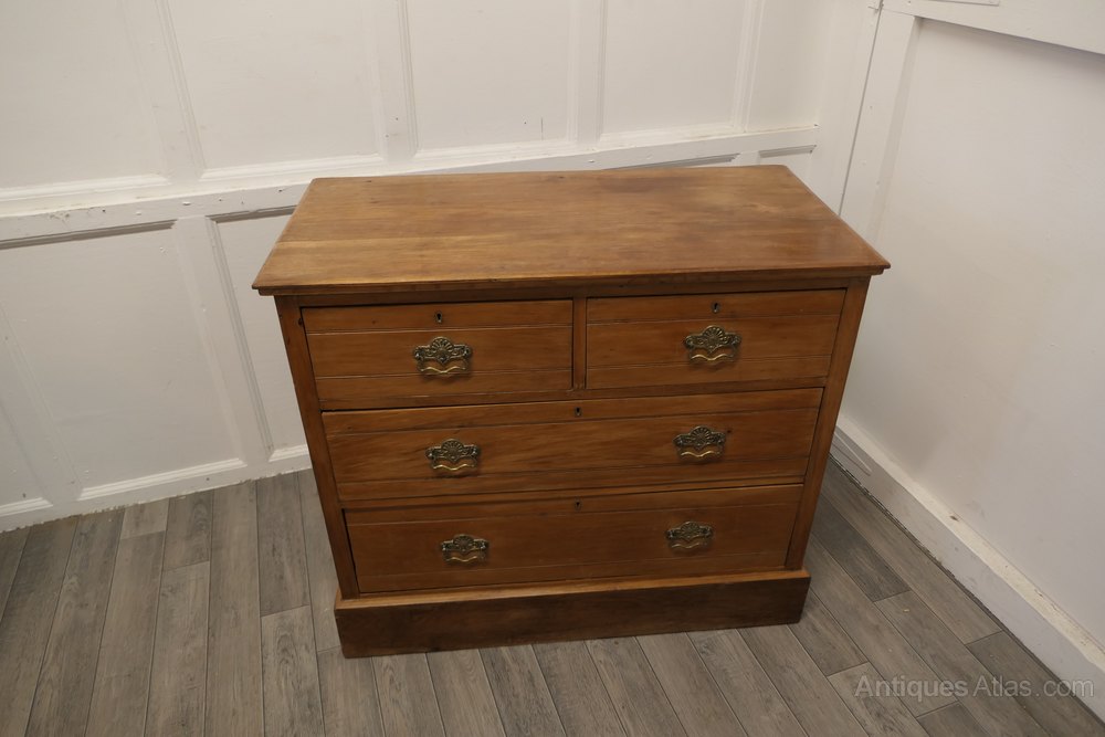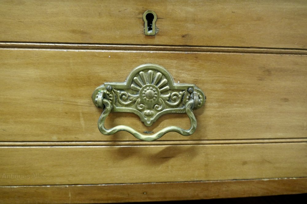 This is a good solid chest, there are 2 short drawers over 2 graduated longdrawers with superb arts and crafts brass handles