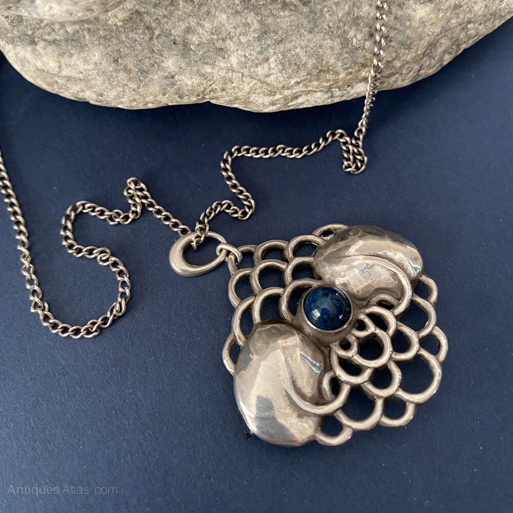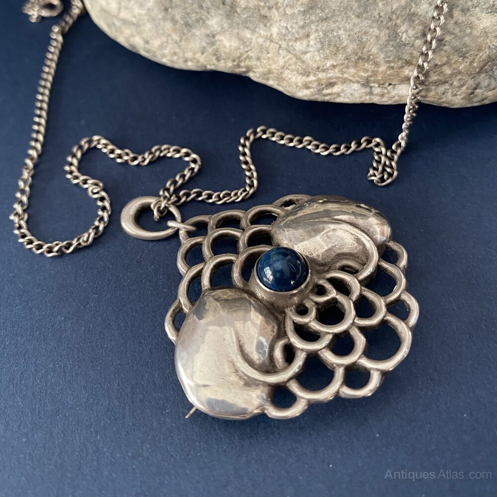 Arts & Crafts Silver & Enamel Pendant Necklace 1909