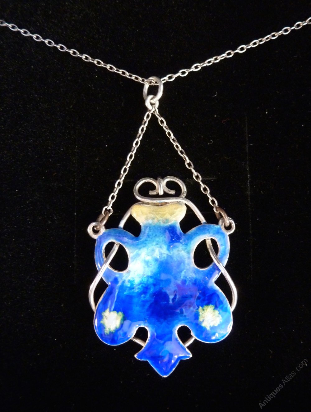Arts & Crafts Silver & Enamel Pendant Necklace 1909