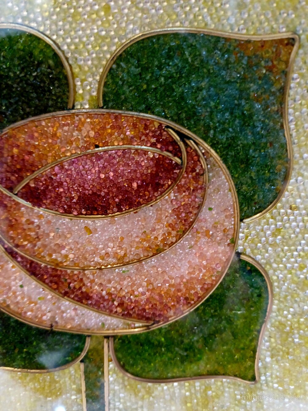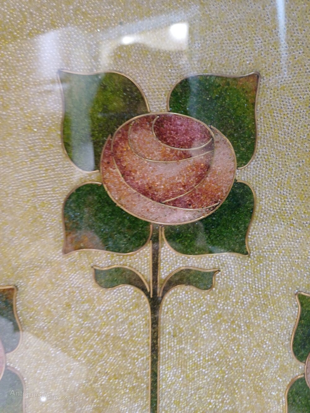 gorgeous brass arts/crafts firescreen with lovely glass beadwork panel of stylised roses