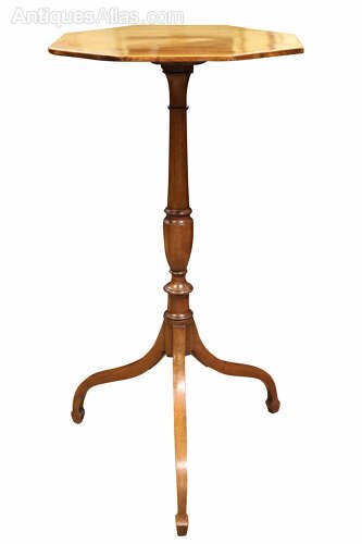 The top is supported on a slender, turned central column, rising gracefully from a well-balanced tripod base. The elegant sabre legs are finely shaped, tapering gently to their terminals and contributing to the table’s light and refined appearance. The proportions are particularly pleasing, giving the piece an air of delicacy while retaining excellent stability.