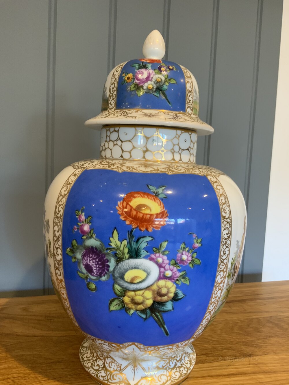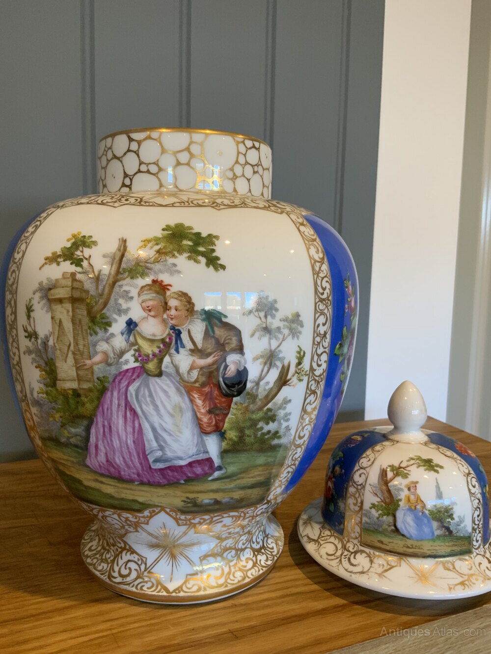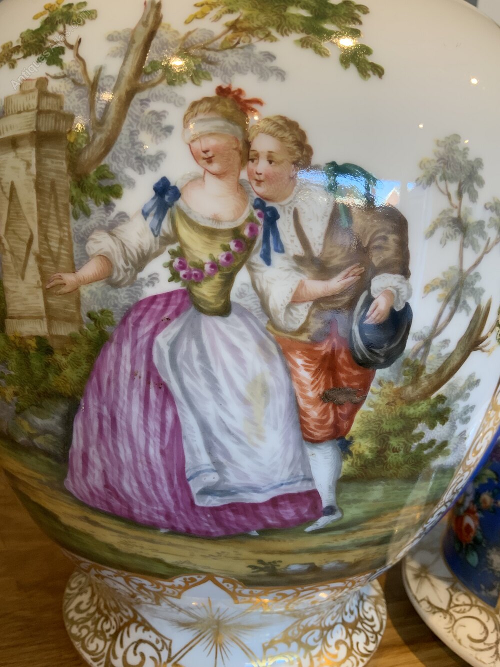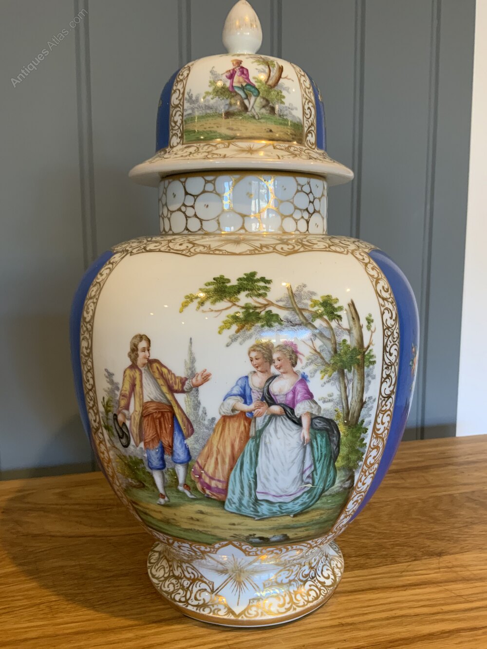 The Augustus Rex 19th century Large Baluster Vase with Courtship Scenes is a stunning piece of decorative pottery originating from Germany.