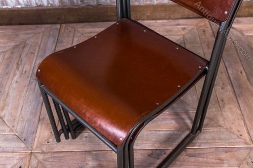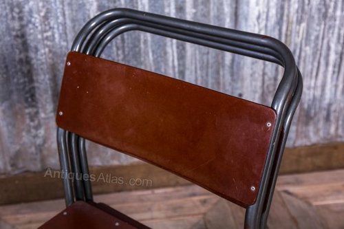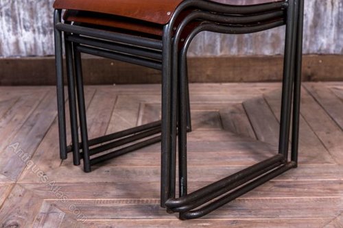We stock hundreds of stacking chairs, in a variety of styles and colours. This particular model features a Bakelite seat and back, with a gunmetal coloured steel frame.