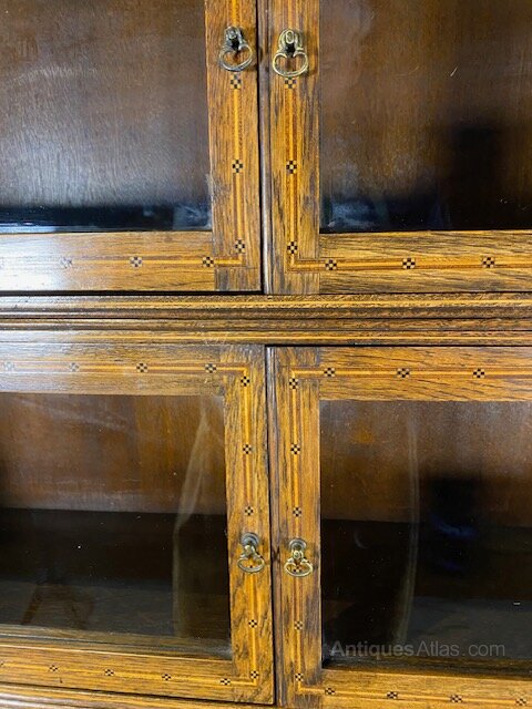 This exceptional inlaid cabinet barrister bookcase which is a rare find due to having the inlay , barrister bookcases are traditionally admired for their clean lines and functional , section design making this one particularly unusual and highly desirable .