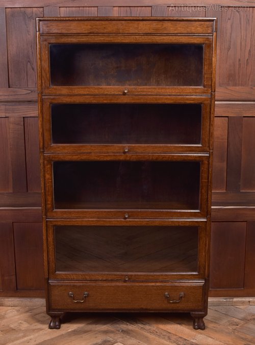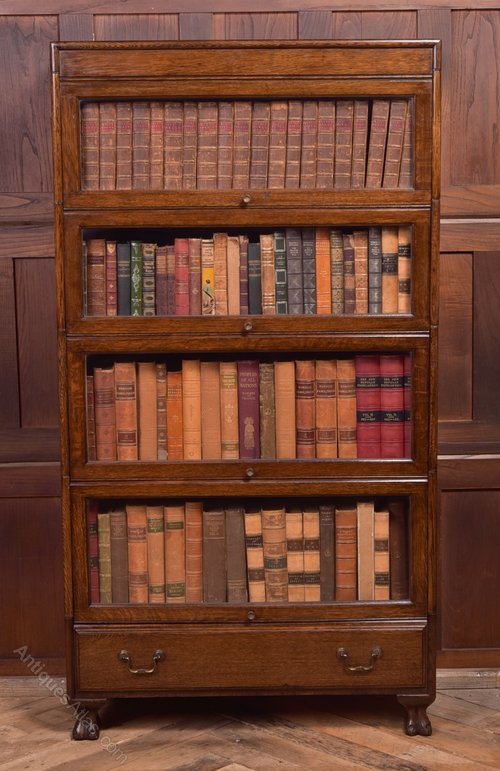 Barrister's Bookcase made from Oak Comprising of 4 book sections and a single drawer base raised on clay feet all in original untouched condition .