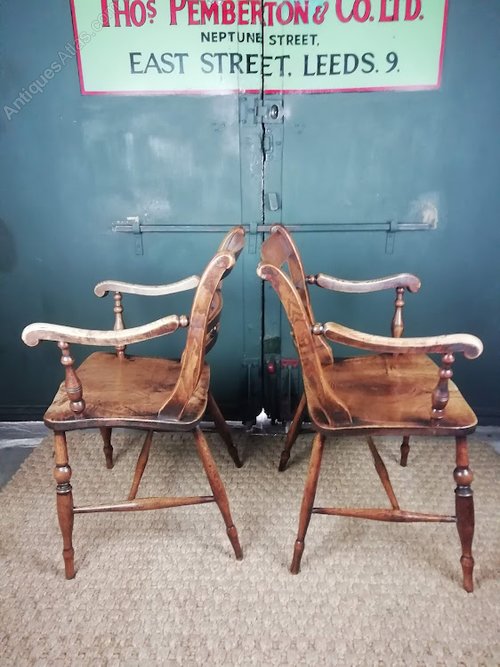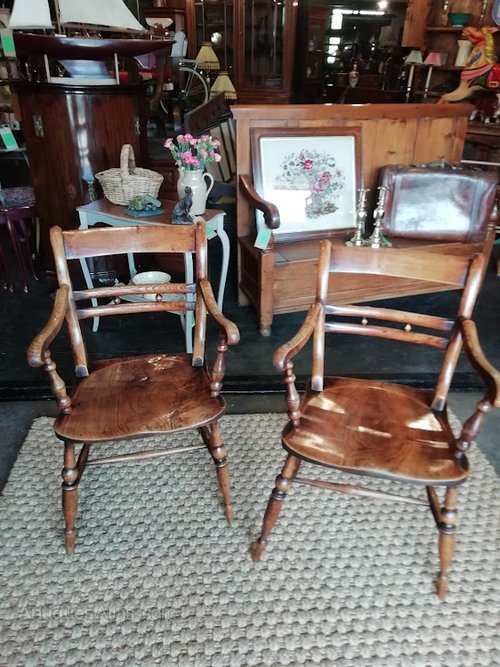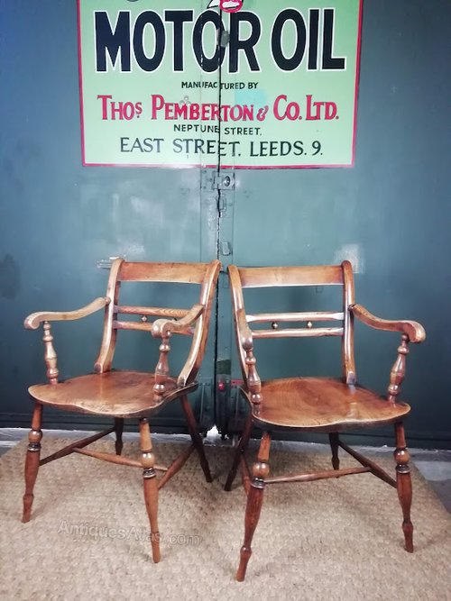 Condition Super original condition with a beautiful well polished colour to both chairs there are some old wood worms holes to the seats but all adds to this handsome pair of 19th century armchairs.
