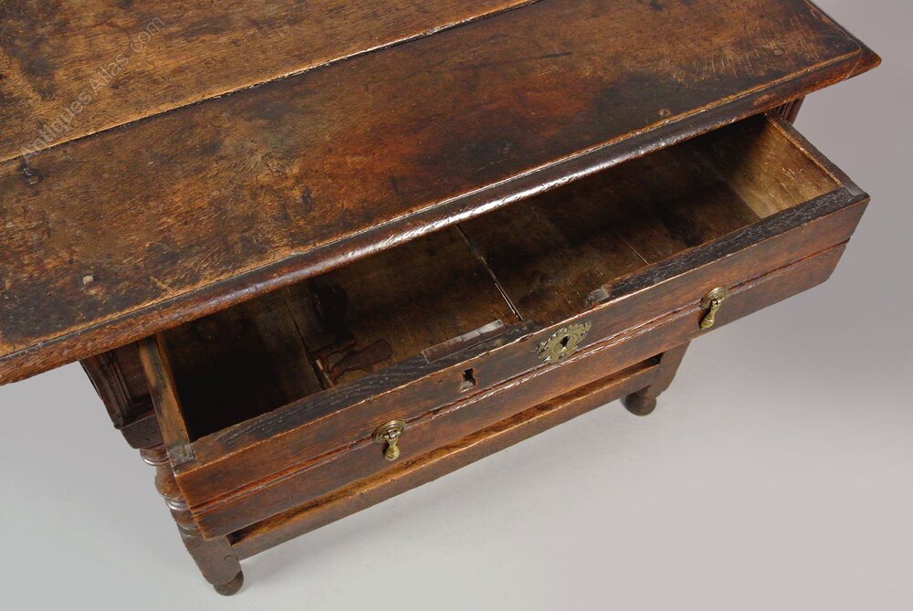 A very good and early English oak lowboy, all original, and with a fantastic colour and patina.