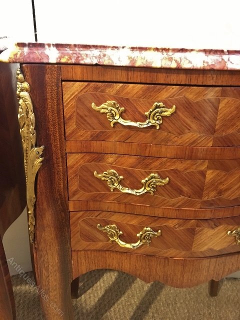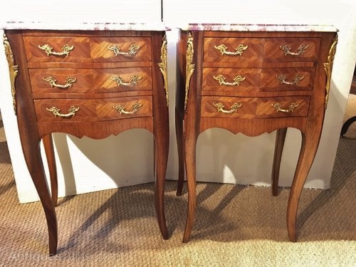 Good pair of marble topped bedside cabinets in the serpentine shape. French C 1930,S