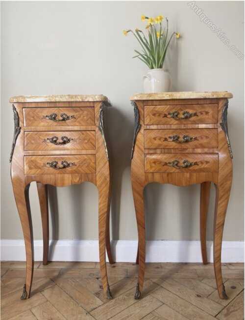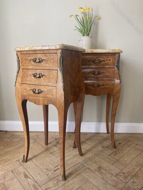 A Pair of French Walnut Bedside Tables