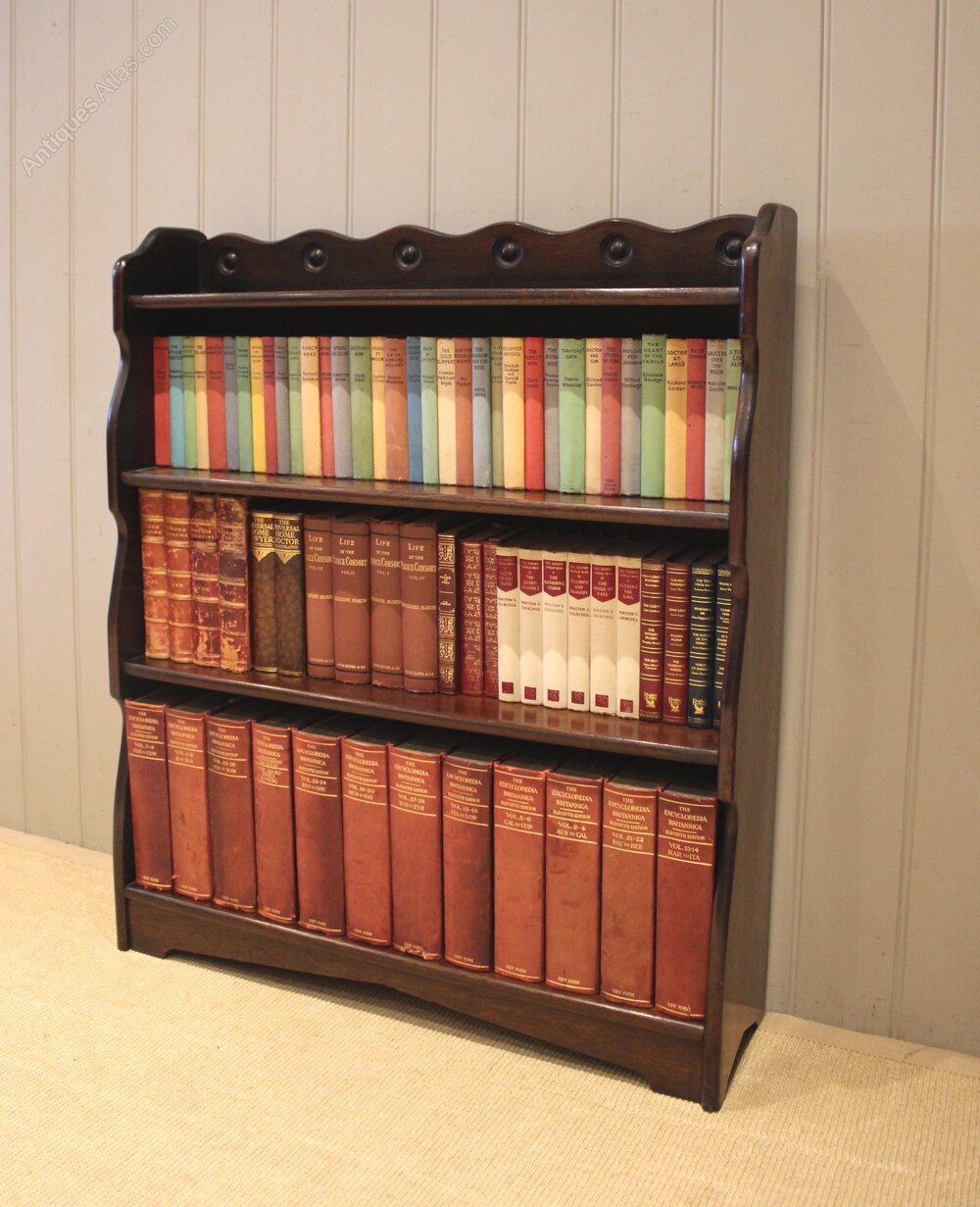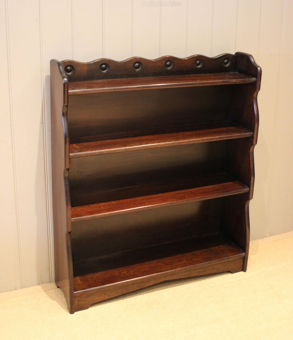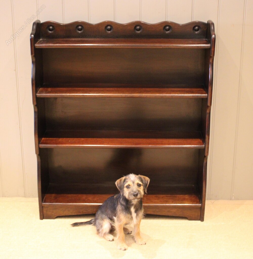 Beech open bookcase having three fixed shelves with carved roundals to the top and base , raised on a plinth base . The shelf measurements are from the bottom up 87cm wide 23.5cm deep and 32 cm high , 87cm wide 21.5 cm deep and 25.5 cm high and at the top 87 cm wide 19.5cm deep and 23cm high