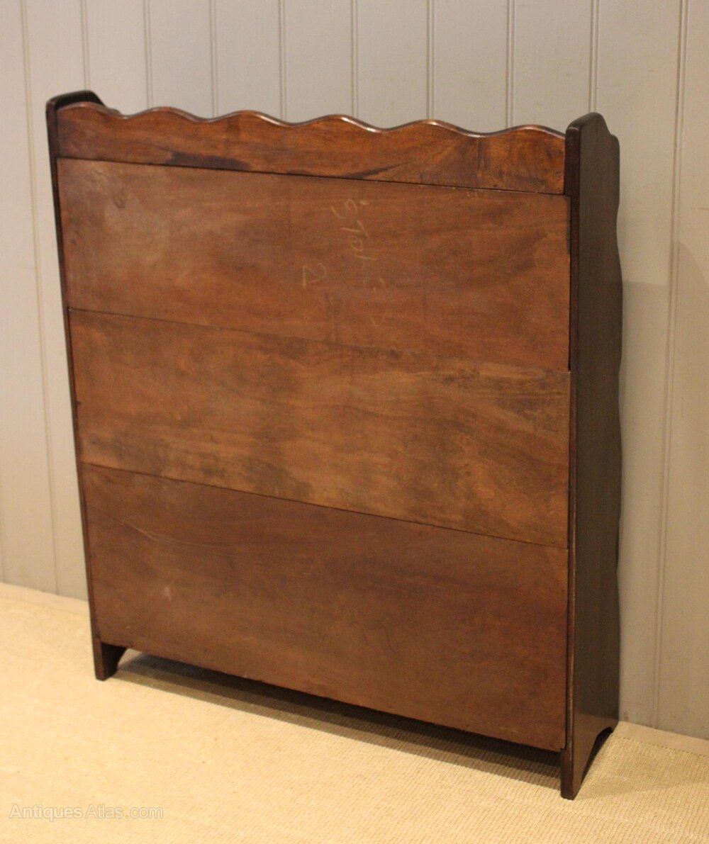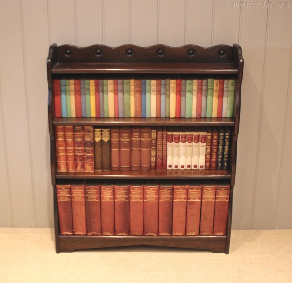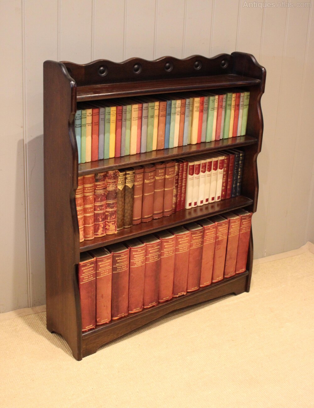 Beech open bookcase having three fixed shelves with carved roundals to the top and base , raised on a plinth base . The shelf measurements are from the bottom up 87cm wide 23.5cm deep and 32 cm high , 87cm wide 21.5 cm deep and 25.5 cm high and at the top 87 cm wide 19.5cm deep and 23cm high