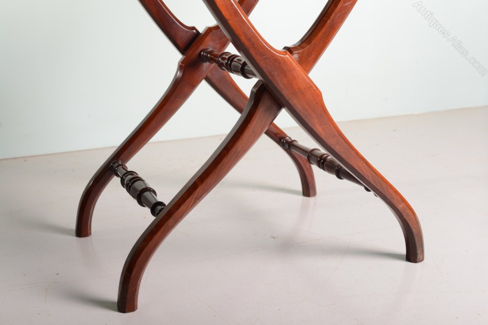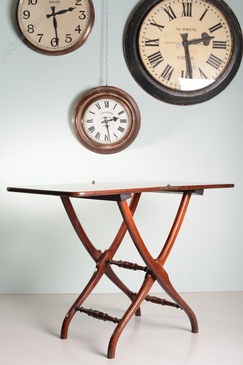 Made to be folded up and stored whilst travelling, this antique mahogany coaching table would make a great looking console table.