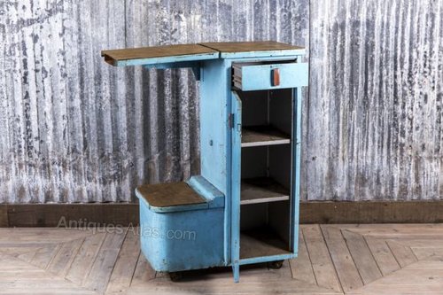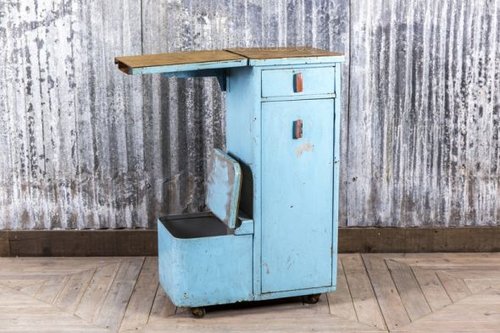 This is a great item of 1950s industrial antique furniture. This piece has recently been acquired from a large clearance, where it was formerly used in a kitchen to store various items.
