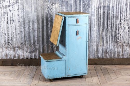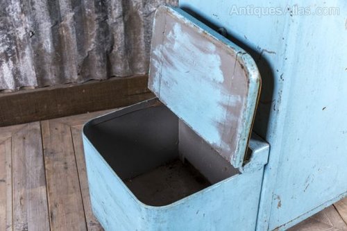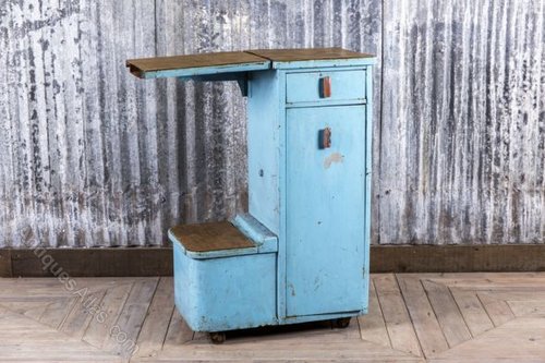 When acquired, this piece had numerous shoe cleaning accessories in it. However, as you can see, it has a multitude of uses and with its lovely distressed blue paintwork, is full of character.