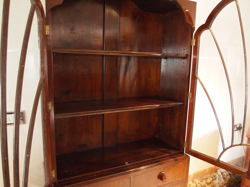 Marquetry Inlaid Mahogany Glazed Cabinet Bookcase