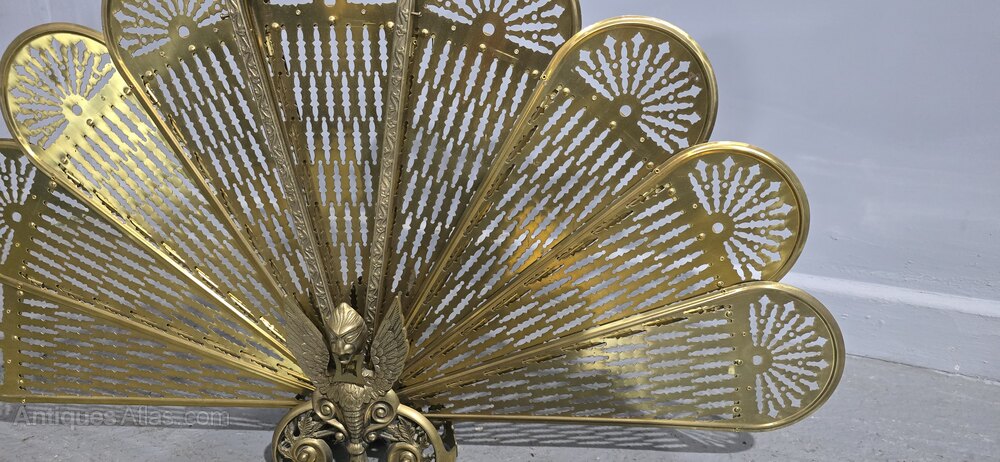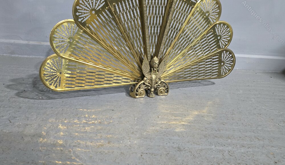 A very good quality brass retractable peacock fire screen, in excellent overall condition.