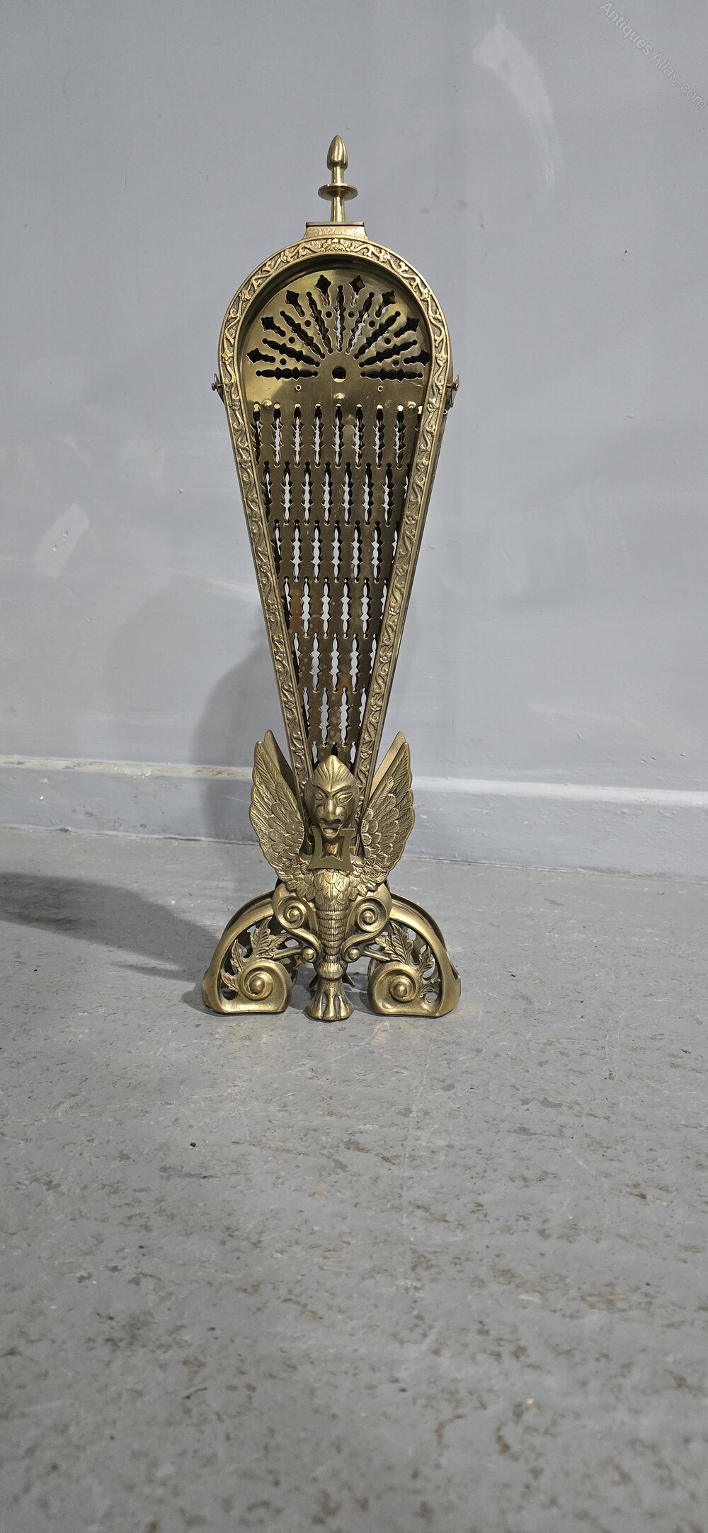 An Art Deco Brass and Sunburst Mirror Fire Screen