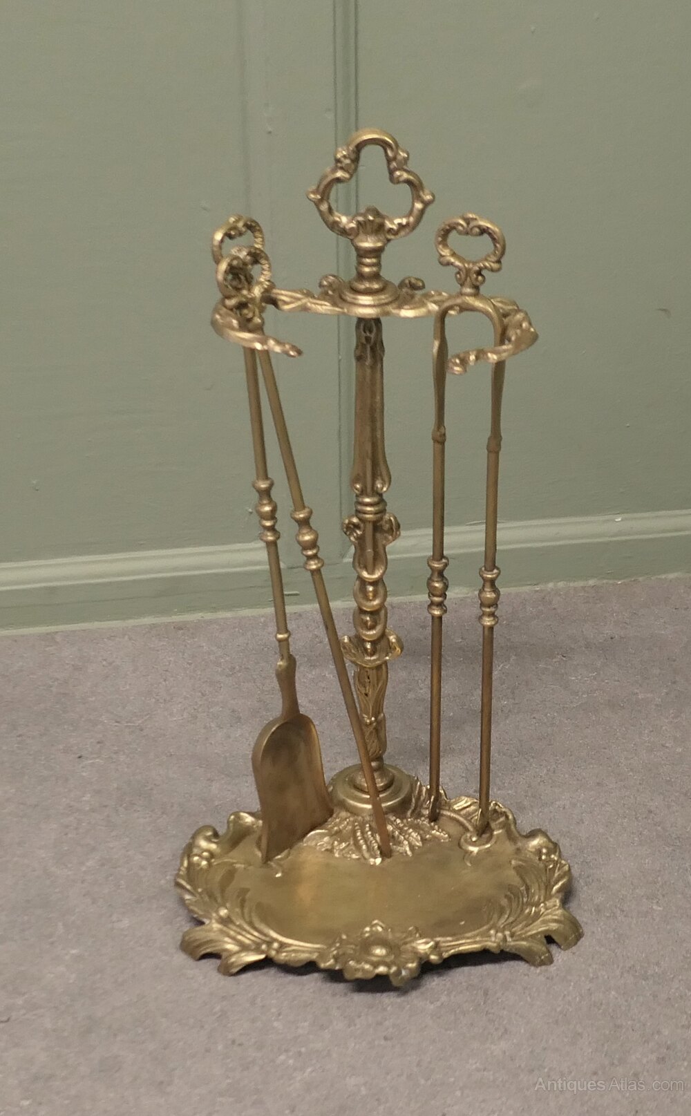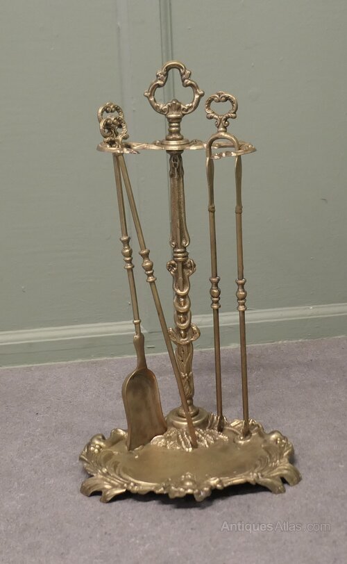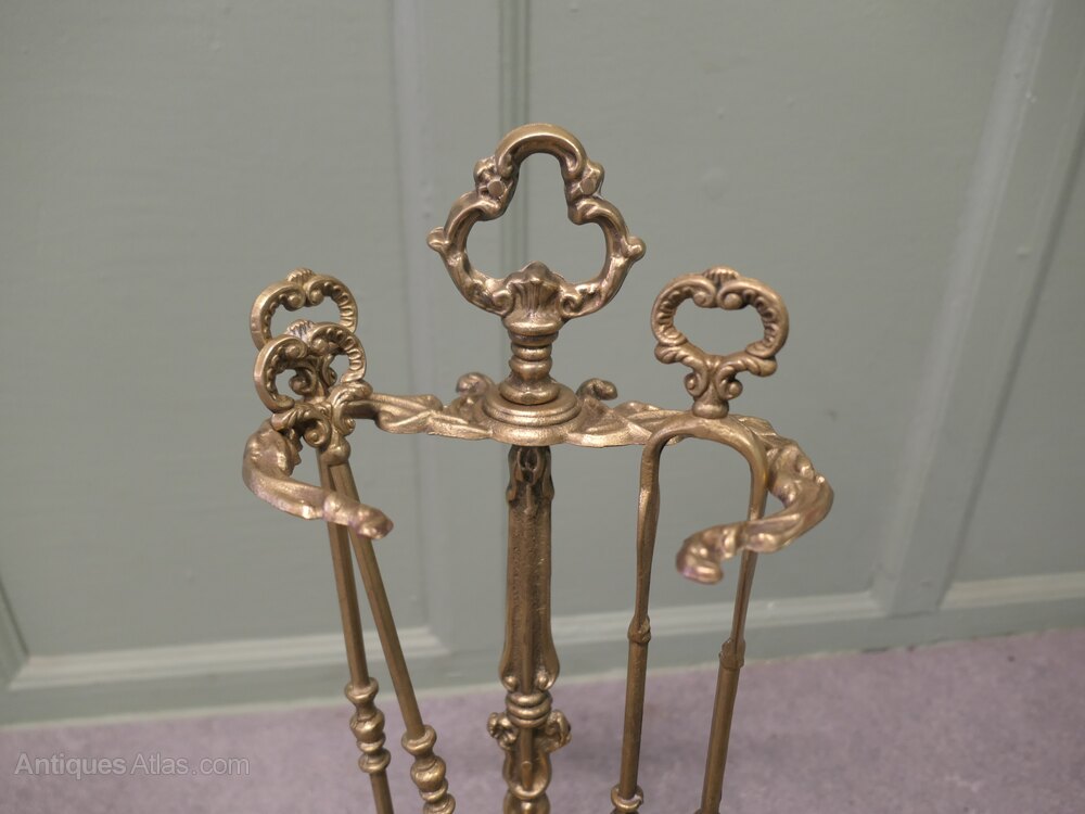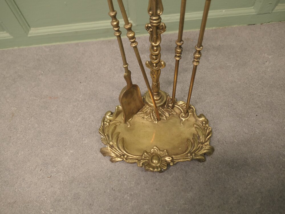 Attractive Brass Rococo Style Fireside Companion Set, Fireside Tools