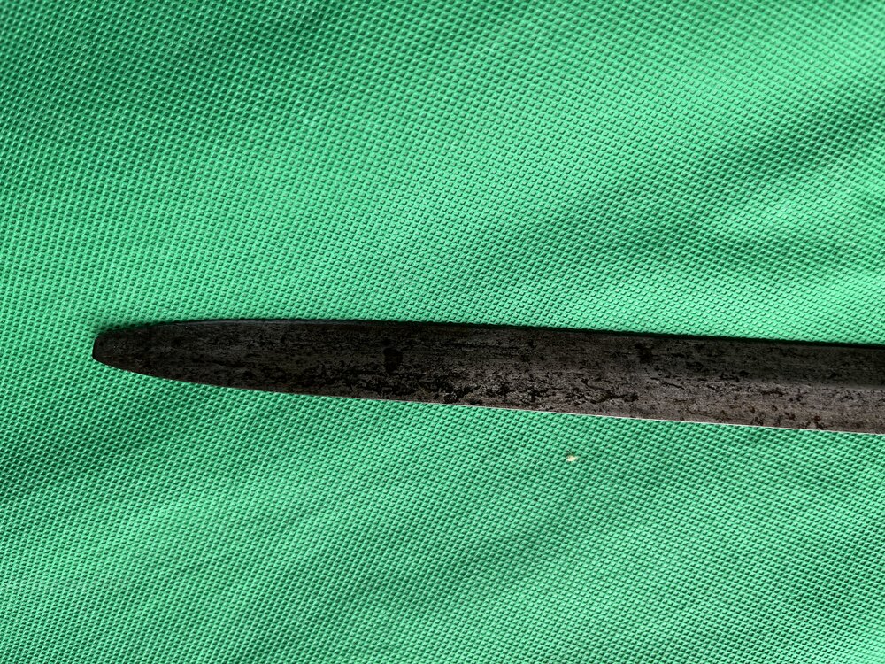 A clean example of a 1822 pattern British Infantry sword. No markings, Blade 83cm long, wooden grip, no wire, all solid, total length 97cm. No scabbard